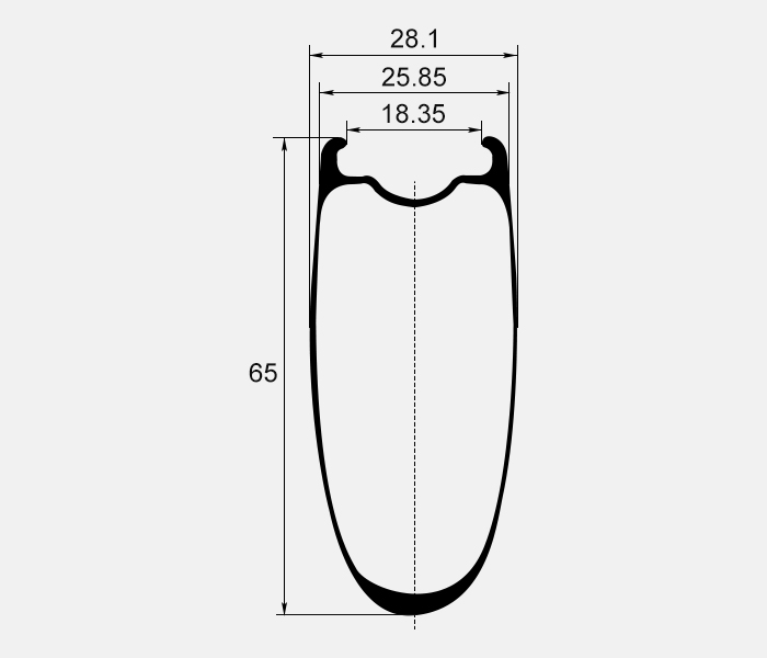Featuring our new U-shaped profile and an incredibly aerodynamic 65mm depth, the R65 disc is the perfect partner for your time-trial, triathlon, or crit racing bike. These build up into some of our stiffest and most aerodynamic wheelsets and maintain top speed like no other. The 25.85mm outer width keeps things aerodynamically optimized with smoother rolling for your 25C ~ 28C tires.
