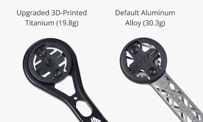 A: The base price includes the AeroRevo handlebar with a standard UD matte finish and titanium bolts. It is our "Bundle A" configuration. Upgrades like the 3D-printed titanium computer mount, custom paint, or custom headset spacers are available at an additional cost.