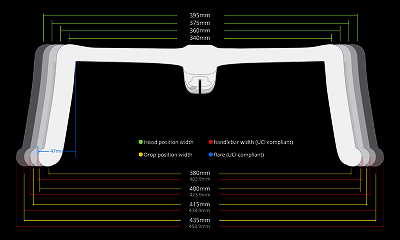 • Dimensions: 123mm drop x 70mm reach, 9 degrees of flare at the drops, stem x -10 degrees