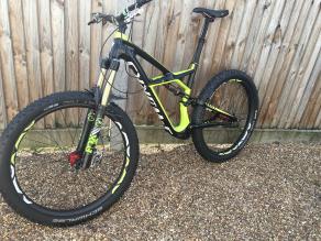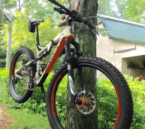 Jim : New Salsa Pony Rustler. 27.5 with 50 mm LB carbon rims. Orange decals match orange ano Onyx hubs. 3"