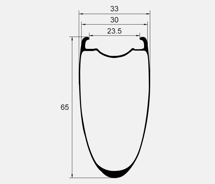 The Airia 65 disc is a high performance road racing and aero wheelset with the superb lightweight and its 65mm deep profile. Through innovative layup design, advanced manufacturing techniques, and premium materials, the Airia series achieves exceptional lightweight performance without sacrificing strength. The product inner width (23.5mm) suits the current mainstream 28C and 30C road tires, which basically complies with the 105% rule of thumb and reduces the aero drag.