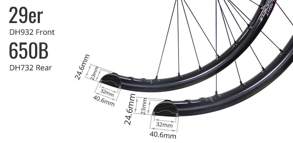 With a 29er front for stability and a 27.5in rear for agility, this Helios DH932 + Helios DH732 carbon mullet wheelset is a dream for downhill riders. For those who want the best of both worlds, the 29-inch front wheel tracks confidently through rough terrain, while the 27.5-inch rear wheel keeps handling quick and responsive, making tight switchbacks and fast line adjustments effortless.