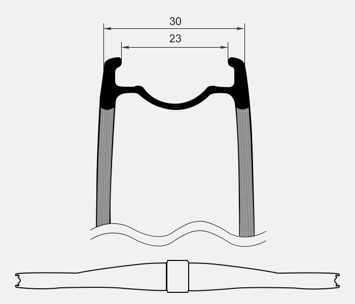 The 23 mm internal width and 30 mm external width with a hooked tire bed is an absolute and perfect choice to follow the latest popular tendency, optimized for modern clincher and tubeless tires, offering an ideal balance between aerodynamics, rolling resistance, and comfort.