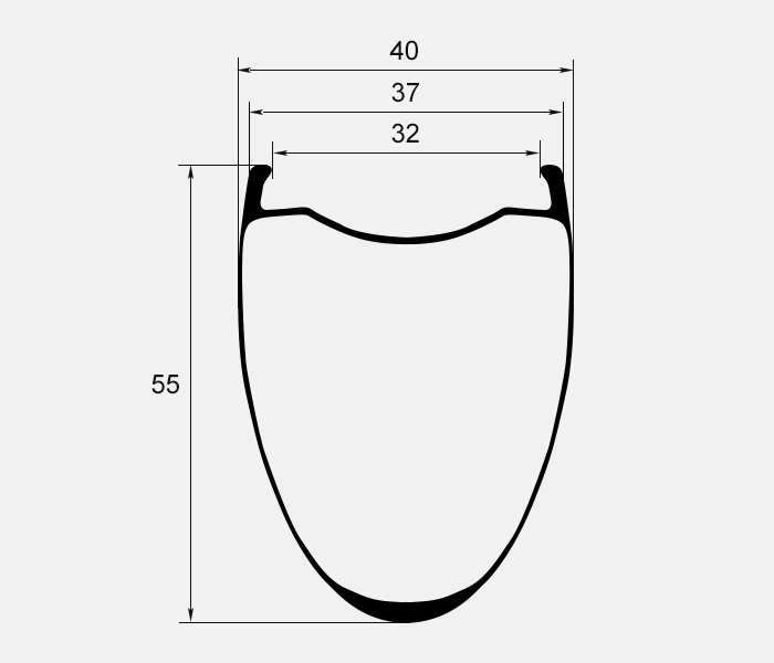 With a massive 32mm inner width, the WG55 disc provides a stable profile for wider gravel tires. It reduces irregular air movements along the rim-tire interface. Air passes the tire and rim concurrently rather than being disrupted prematurely, making the best use of the 55mm aero depth.